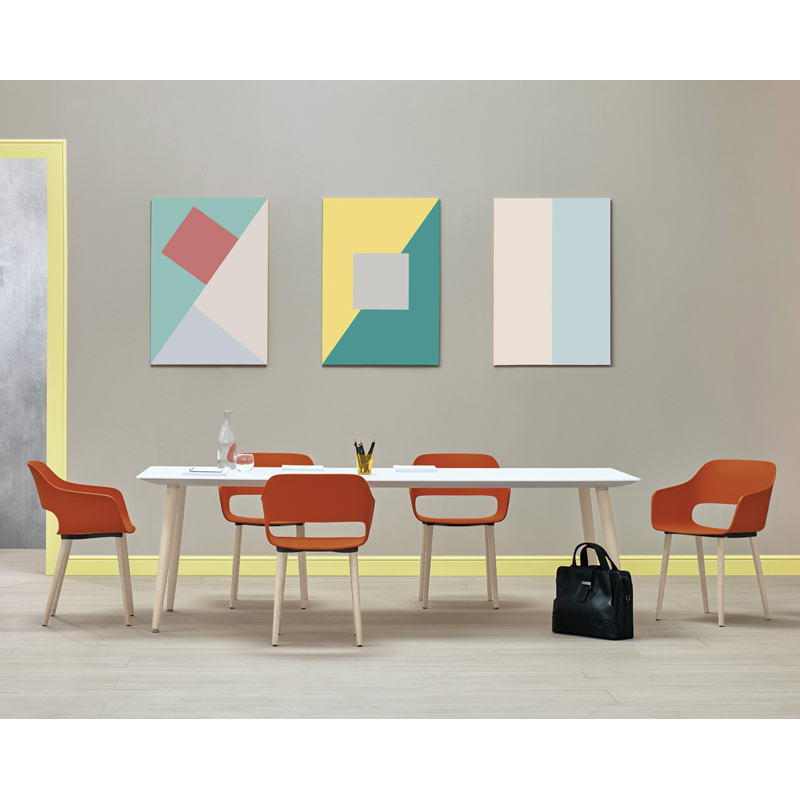 Created by Odo Fioravanti for Pedrali, the Babila collection moves nimbly between tradition and innovation. Its strength lies in its simplicity and immediacy, reminiscent of a timeless form. The use of polypropylene has made it possible to create a very comfortable shell that is both flexible and resistant. The solid ash legs of the Babila 2755 contrast with the hull and add a warm touch. Edited by Pedrali, the eclectic Babila collection will suit a variety of situations and different types of space, whether professional or residential.