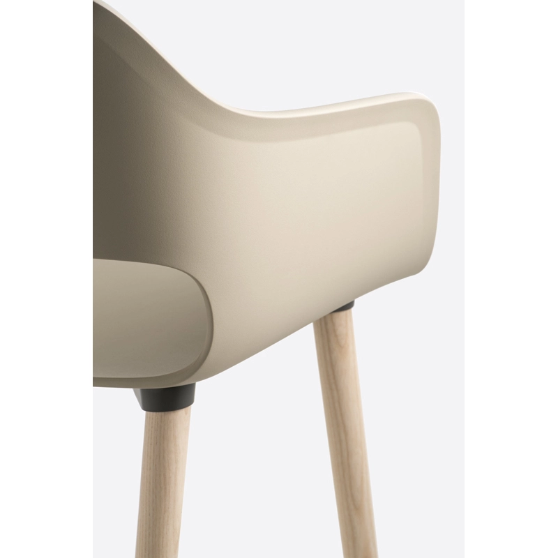 Babila collection moves nimbly between tradition and innovation. Its strength lies in its simplicity and immediacy, reminiscent of a timeless form. The use of polypropylene has made it possible to create a very comfortable shell that is both flexible and resistant. The solid ash legs of the