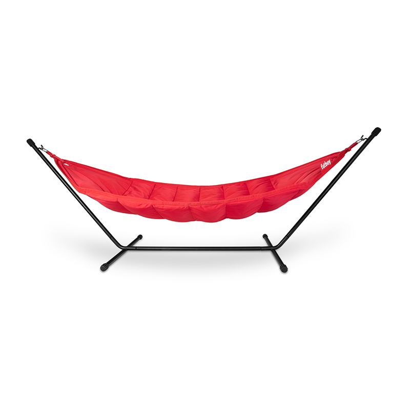 The Fatboy Headdemock is a large luxury hammock for up to two people (or up to 150kg). You will no longer depend on a rope or a tree for your happiness. Headdemock is a folding, compact hammock ready to overturn all codes. Thanks to its structure, this Fatboy hammock can be set up as you like! The large hammock is made from durable polyester and the frame is made from metal and rubber. Thanks to the water-repellent, dirt-repellent and UV-resistant fabric, you'll enjoy this masterpiece for years to come. The Headdemock is a folding hammock that comes with a matching carry bag. This makes it even more practical, as it can be easily stored away at the end of the summer.