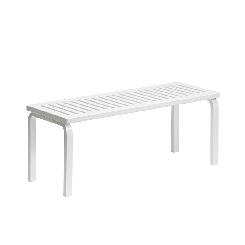 The 153 bench is lightweight, versatile and equally at home in public and private spaces. It is made from solid birch wood. Combining strength with the warm organic qualities of Finnish birch, the 153 bench blends naturally with the other members of the L-leg family. Thanks to Aalto's revolutionary L-leg system, the legs can be fitted directly to the seat without the need for complicated connecting elements. Designed by Alvar Aalto in 1945, the 153 bench is a late and much-loved addition to the L-leg collection.