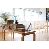 The 153 bench is lightweight, versatile and equally at home in public and private spaces. It is made from solid birch wood. Combining strength with the warm organic qualities of Finnish birch, the 153 bench blends naturally with the other members of the L-leg family. Thanks to Aalto's revolutionary L-leg system, the legs can be fitted directly to the seat without the need for complicated connecting elements. Designed by Alvar Aalto in 1945, the 153 bench is a late and much-loved addition to the L-leg collection.
