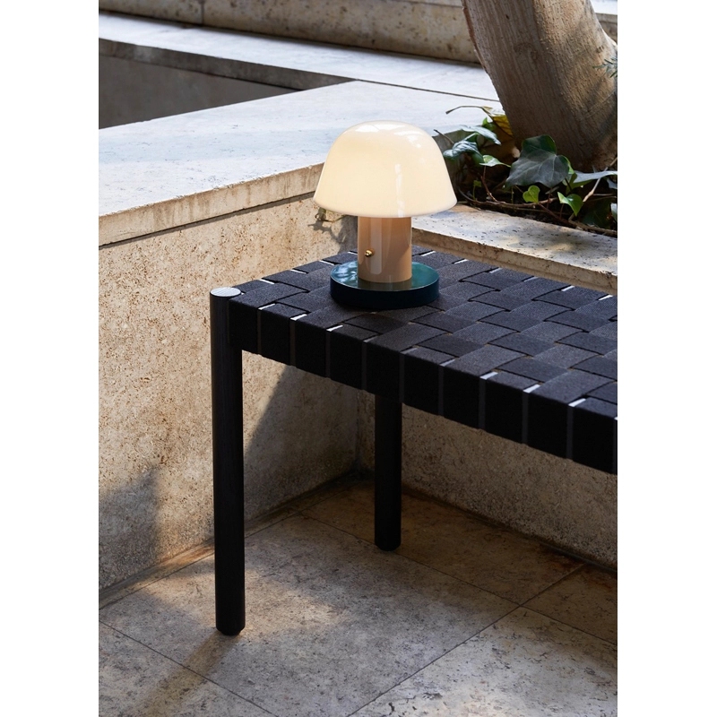 Named after the Betty Nansen theatre in Copenhagen, the Betty TK4 & TK5 benches by Thau & Kallio stand out for their seat made from natural linen fibre webbing, hand-woven to fit each seat frame as snugly as possible. The straps that form the structure of the seat reveal a view of the design, creating a light, airy presence that's almost transparent. The solid oak frame is available in three contemporary colours: black, midnight blue and red, and in two lengths: 105 cm and 157 cm.
