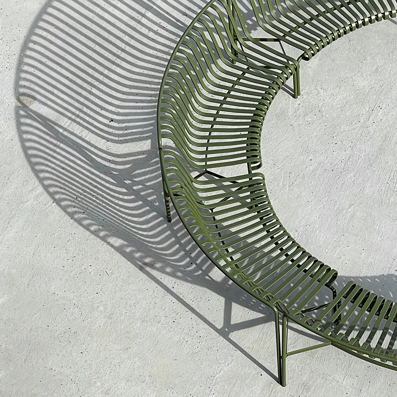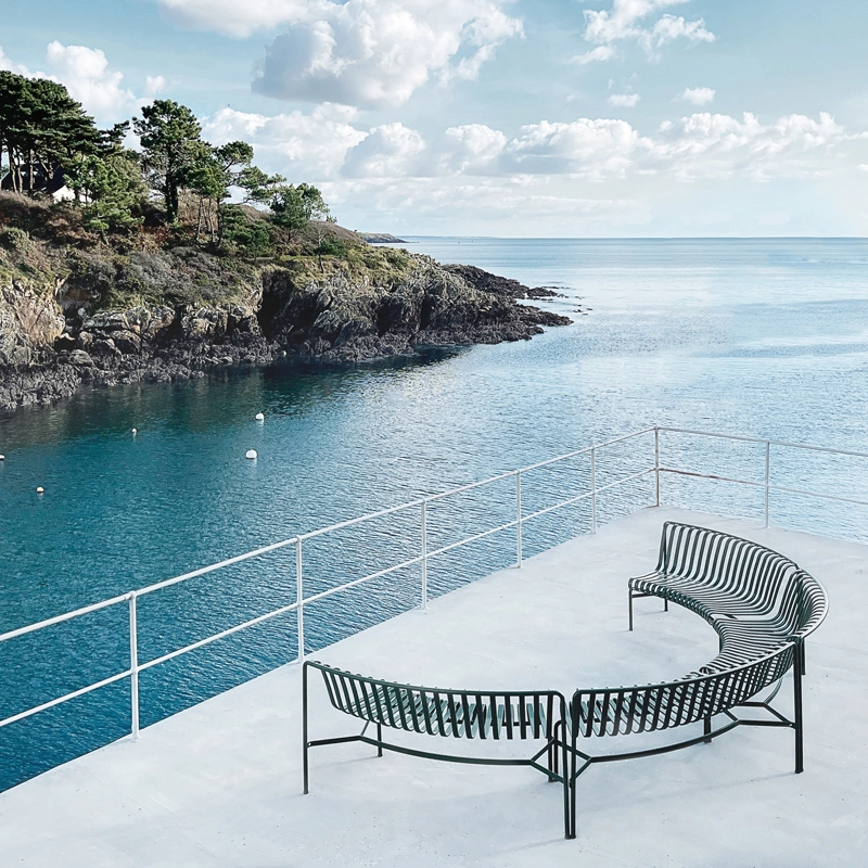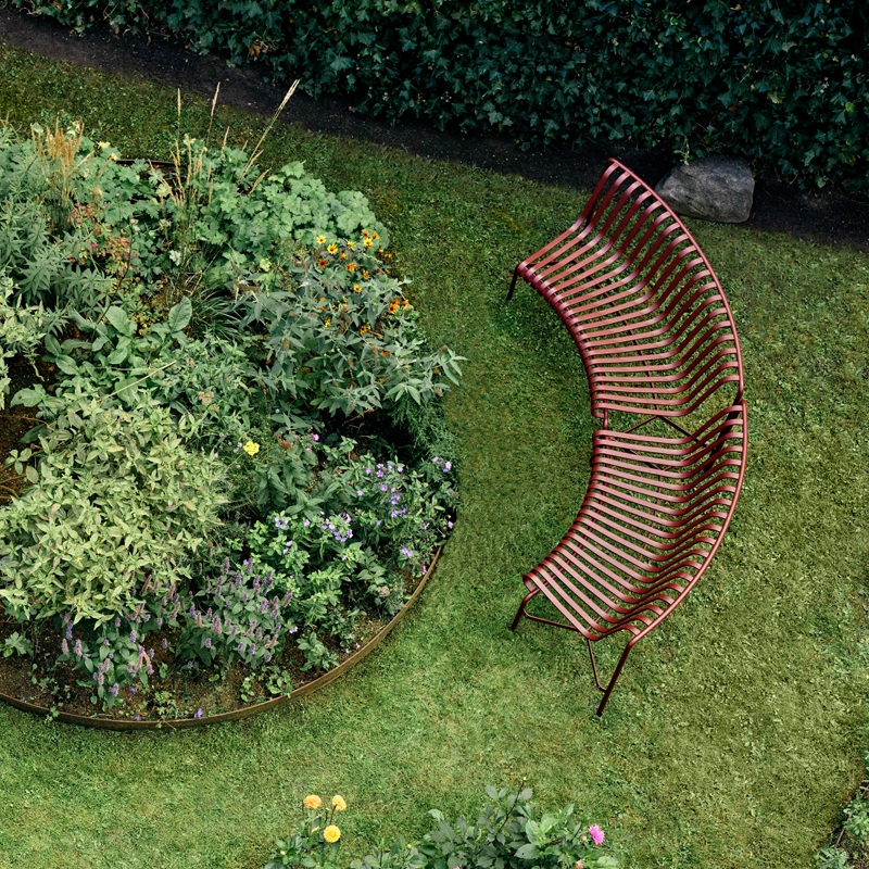 The Palisade bench was designed by French duo Ronan and Erwan Bouroullec for the Hay brand. The Palissade series comprises a wide range of furniture, in which all the pieces share the same design principle. It includes chairs, small armchairs, lounge chairs, stools, tables, benches... Specially designed for outdoor use, these pieces are visually light but robust in their construction. Inspired by classic furniture, the originality of the collection lies in the details. Although made of steel, this outdoor furniture is comfortable simply because of its design. This Palissade Park set includes 2 curved benches with backrests, linked together. This Hay bench is as elegant as it is hard-wearing.
