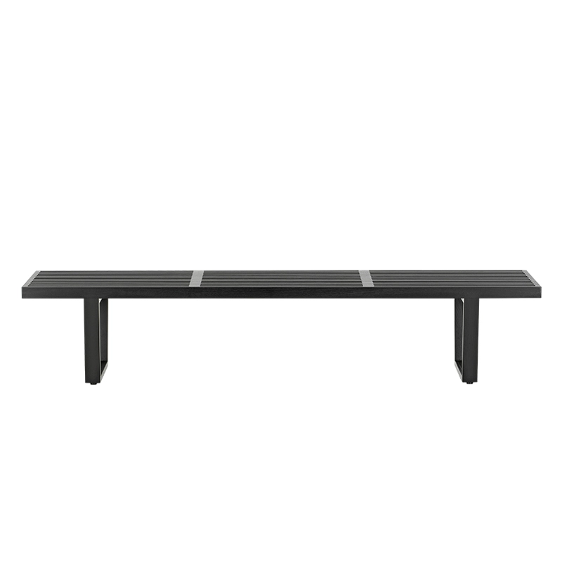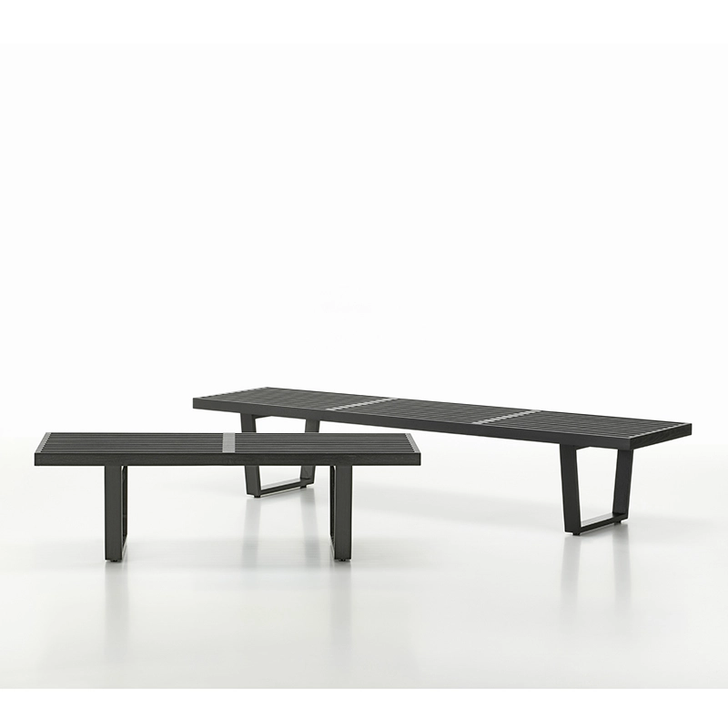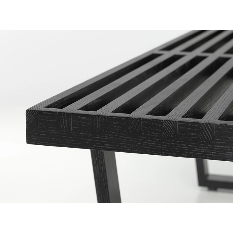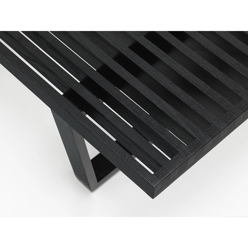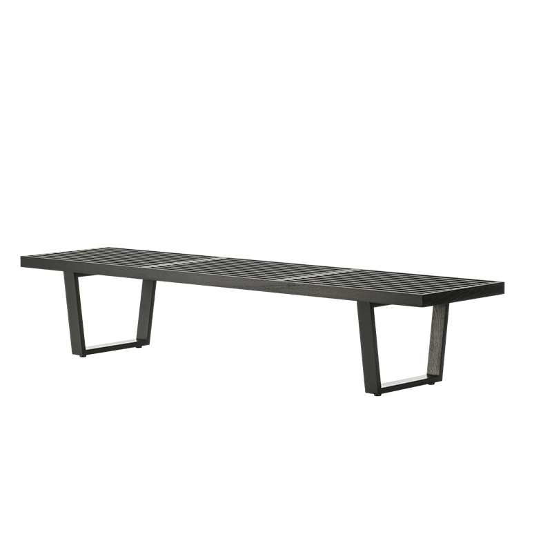 Produced in Europe by Vitra, this bench designed by George Nelson in 1946 has become an icon of modernist design of the mid-twentieth century, combining aesthetics and functionality. Bench's formal language with its clear, straight lines showcases George Nelson's training. Like many design classics, Bench adapts to a wide range of uses, and can be used as a bench as well as a side table. It is made of natural ash slats and features a black lacquered ash base.