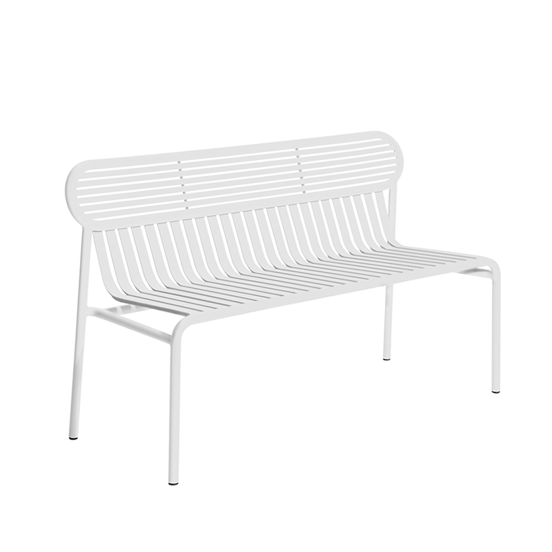 With Week-End, the French brand Petite Friture, takes its singular look at summer and, with the Brichet-Ziegler studio, offers a graphic and contemporary approach to garden furniture. It plays on a rhythm of horizontal and vertical bands skilfully laid over a structure with strong lines. The strips on this bench, which characterise the Week-End collection published by Petite Friture, are made from laser-cut aluminium sheets in a single piece rather than assembled slats, allowing the elimination of uncomfortable screws or welds. The slats, like the stripes, emphasise the fullness and emptiness, affirming the identity of the collection. The Week-End collection is a complete outdoor furniture range. The precise colours selected for this collection mark the skyline of a balcony, terrace or garden, alone or in combination. This bench is available in a range of colours, including black, yellow and jade green. The colours in the Week-end collection, by Petite Friture, are finished in grained anti-UV epoxy powder paint, guaranteeing that the colours will hold up impeccably over time. The design bench proposed by Petite Friture has been conceived with the obsession of making the most of the materials and production techniques available to designers. Made from aluminium, a material selected for its lightness and weather resistance, the Week-End collection combines aesthetic comfort with practicality. This collection has been designed for practical use, because all the seats are stackable.