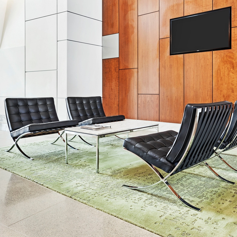 Ludwig Mies van der Rohe was a great 20th-century German designer and architect. He designed one of the most iconic pieces of design and vintage furniture, the Barcelona armchair known as: the Barcelona warming cabinet. He designed it for the German pavilion at the Barcelona World Fair in 1929. It has been produced since 1953 by Knoll to its designer's original specifications. The logo of Knoll and the signature of Ludwig Mies van der Rohe are engraved on the base of each chair. Opulent yet resolutely modern in appearance, this Barcelona heater takes its shape from the Roman folding curule chair. Its rectangular silhouette, wider than it is tall, captivates with its harmonious proportions. The prestige of royal guests is evoked by the slender chrome-plated flat steel base: its X shape is reminiscent of the "curules", the antique seats used by Roman dignitaries. Subtly, this design gives the chair the air of a modern throne. The structure and base of this Barcelona armchair by Knoll are made from bright chrome-plated drawn flat steel. The cushions are upholstered using 40 individual panels cut, hand-welted and hand-tufted from a single hide. The cushioning on the seat and backrest adapt to fit the curve of the frame. The side and edges of the upholstery straps are dyed to match the chosen upholstery colour. The Barcelona armchairfrom Knoll is available in black Velluto Pelle leather or white Volo leather.