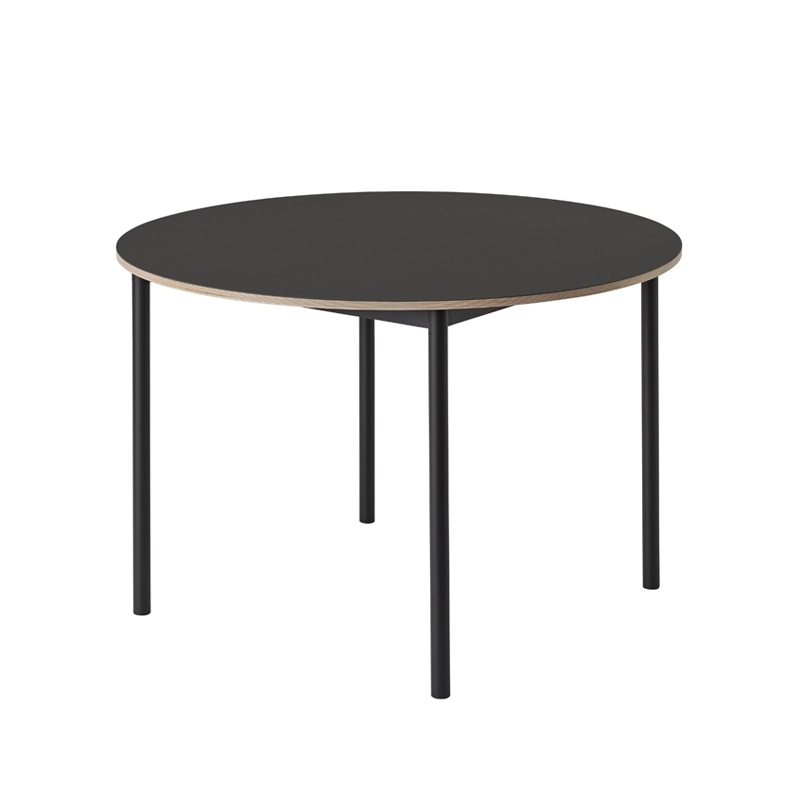 The Base Table edited by Muuto stands out for its simplicity. Visually, it embodies the archetype of a table, like a child's drawing. This simplicity makes it a perfect base for creating a table with an extruded aluminium frame that makes it perfect for both professional and private environments. The top is laminated or covered with linoleum and the edge is made of plywood. With careful attention to detail and quality, Muuto has produced a table that stands up to daily use for your meals. The apparent simplicity, lightness, high quality construction and dimensions make this round table an easy piece of furniture to integrate into small spaces.