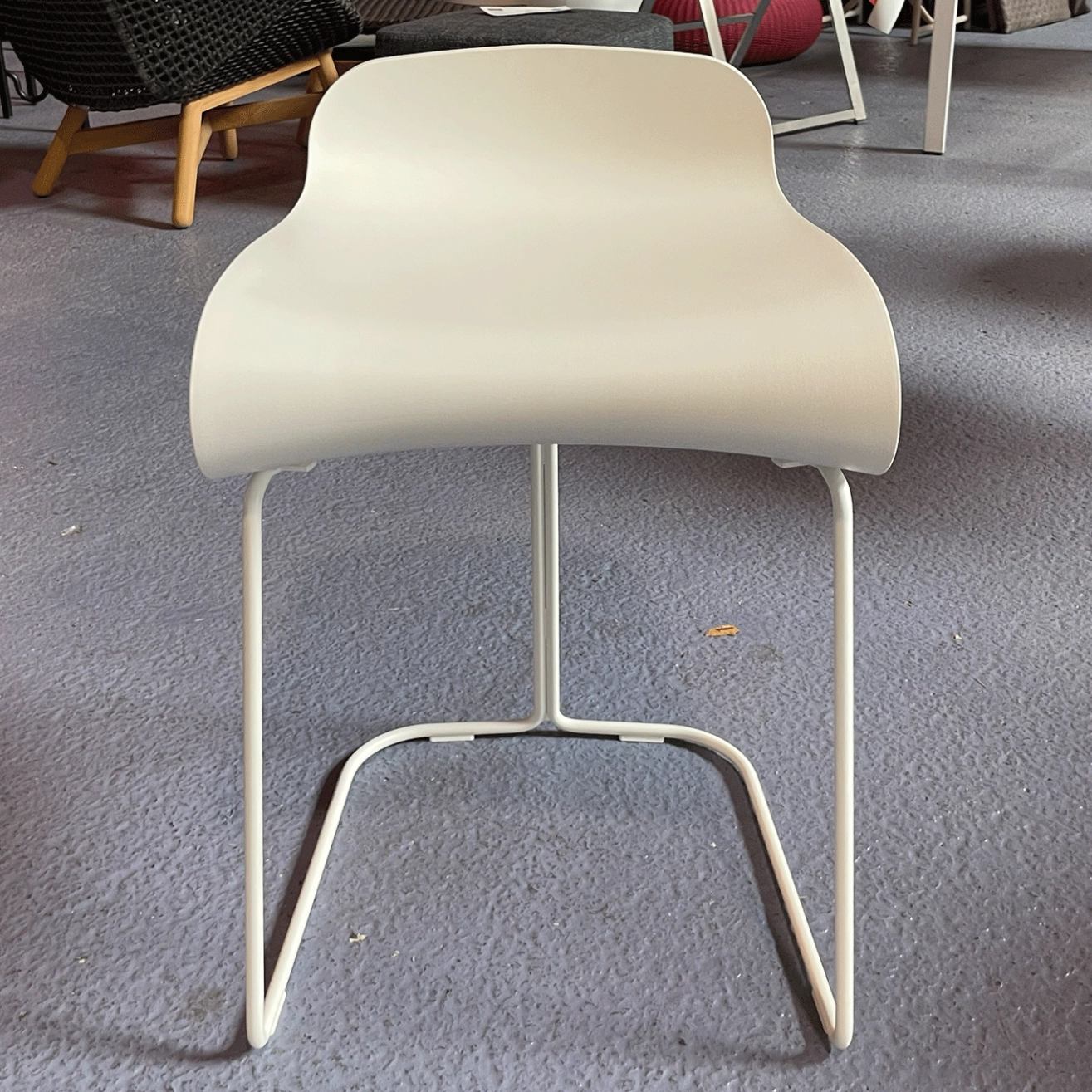 The pre-owned BCN stool is the result of innovative exploration of materials and technologies in the furniture industry. Its sinuous and elegant shape was made possible by the use of PBT plastic, a material both strong and flexible enough to provide optimal comfort. Designed by Harry & Camila for the brand Kristalia, the BCN stool perfectly combines contemporary design and functionality. Made from a special plastic usually used as insulation for electrical components, this stool stands out for its exceptional resistance to wear, heat, and solvents. Its steel tube frame, matching the color of the seat, completes the look with style. Thanks to its flexibility and comfort, this pre-owned high stool fits perfectly into a modern kitchen or around a high table.