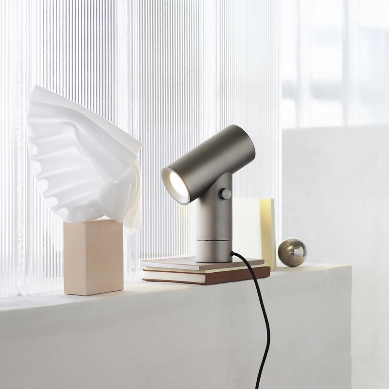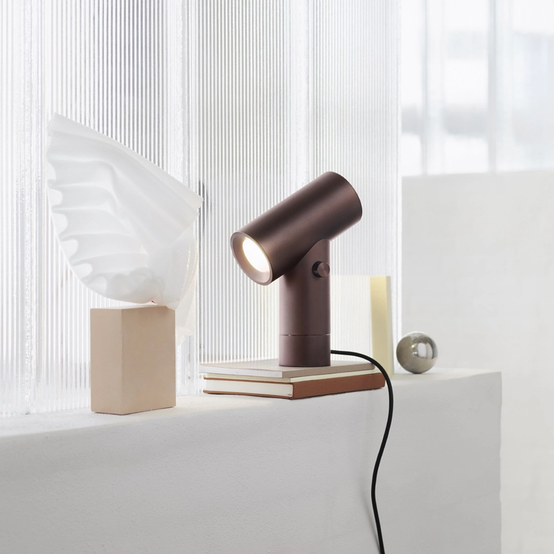 For his first collaboration the Muuto brand, the Canadian designer presents Beam: a table lamp modern in expression and function. It is made from anodised aluminium, which is both tactile and reveals a unique aspect of the colour. Very practical, the Beam lamp has two light sources, one at each end of the cylindrical diffuser. The base is equipped with a dimmer switch that allows you to choose between three levels of brightness. Another functional feature is the rotating base, which allows the lamp to be rotated 350 degrees to suit your lighting needs. With its streamlined shape, Beam by Muuto adapts to all interior styles and is equally at home on a desk, windowsill or side table.