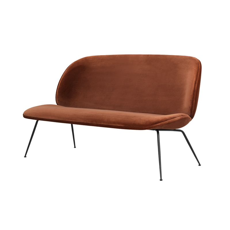 Beetle Sofa 2-seater plays on the contrast between the enveloping outer shell and a soft, welcoming interior that encourages you to sit down. The character of the seat is reinforced with delicate, slightly conical feet, giving a feeling of lightness. The designer duo GamFratesi studied the anatomy, aesthetics and movement of a beetle. The design of