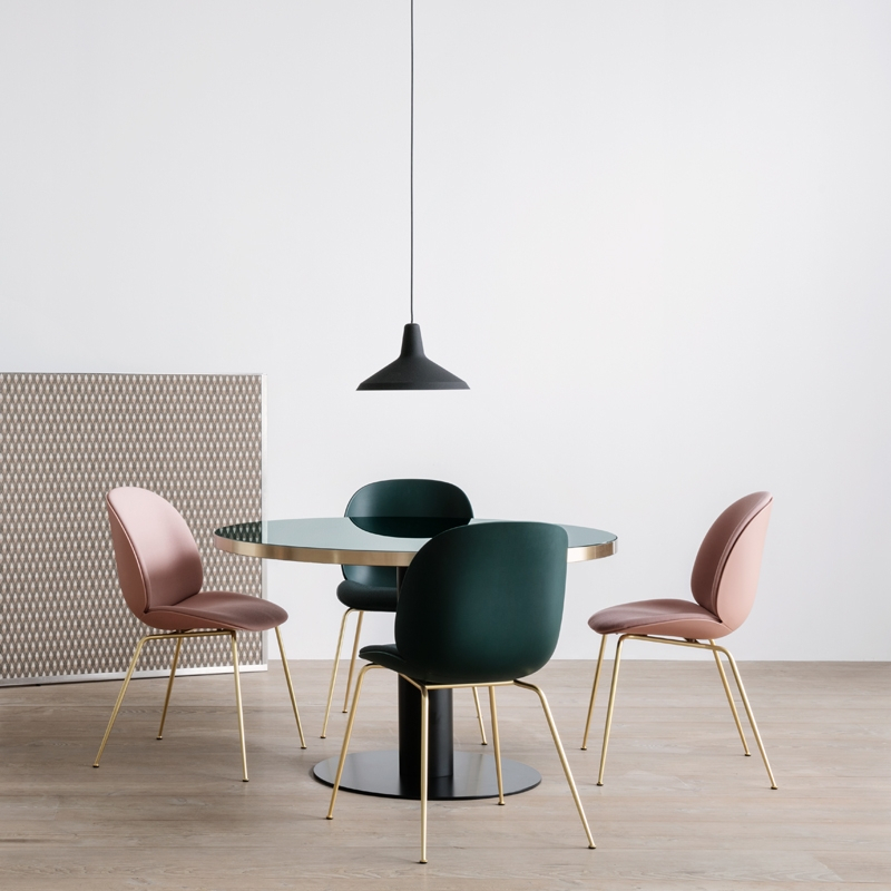 For the Beetle collection, Denmark's Stine Gam and Italy's Enrico Fratesti were inspired by the beetle, studying the insect's anatomy, aesthetics and movement. The Chair Beetle met its public on its introduction in 2013 and has since become Gubi's biggest commercial success. Thus, the collection reinterprets the characteristic elements of the beetle: its shape, joints, the rigid appearance on the outside and the softness on the inside. The Beetle chair is a blend of classic Italian design and Scandinavian traditions. The studio's creations often play with the heritage of classic Danish design, but also with nature and more particularly the world of insects, since the Beetle was inspired by the shell of beetles. Now available in an unupholstered version, the beetle chair has become a collection with limitless possibilities. Its plastic shell gives it a lighter look while being very robust and more accessible. Its matt texture, which gives it a very tactile feel, is combined with exceptional seating quality. The seat and backrest are made up of two shells with curved lines that reproduce the insect's shell. The animal's legs are represented by slender, tapered feet in brass steel. The different elements of the Beetle chair are linked and worked in a fluid way. Thanks to the multiple shell colours and base finishes available, the unupholstered Beetle chair from Gubi fits into all types of spaces, whether at home around a dining table or in communal environments. Its attractive design, exceptional comfort and wide range of customisation options have won over private individuals and interior designers alike, and it can now be found in many of the world's most renowned restaurants.