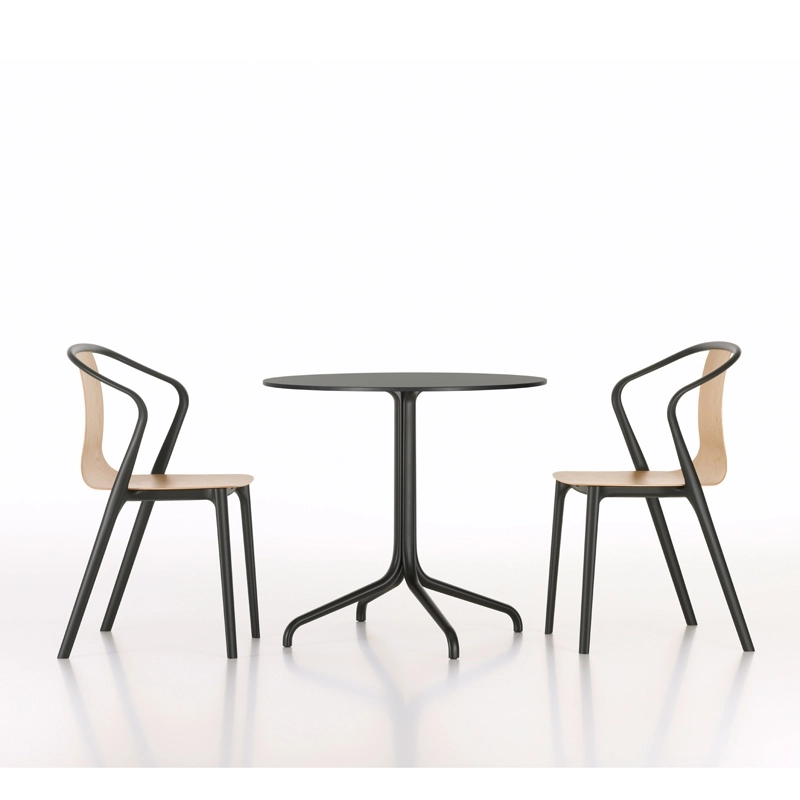 Inspired by classic bistro furniture, the Belleville collection takes its name from the Parisian district where designers Ronan and Erwan Bouroullec's studio is located. The series consists of contemporary chairs and tables with a dynamic and refined look, but with a certain tradition. The table, available in round, square or rectangular versions, has a slender base in die-cast aluminium with a black epoxy finish, combined with a top in oak veneer or solid laminate. The 200cm long rectangular table is made with a solid wood top. Combined with the chairs in the same collection, the Belleville table by Vitra is equally at home in a domestic space - a kitchen or a dining room - as in a public place, such as a restaurant. The laminated version is also suitable for outdoor use.