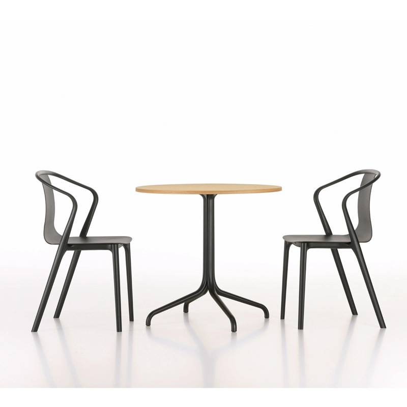 Inspired by classic bistro furniture, the Belleville collection takes its name from the Parisian district where designers Ronan and Erwan Bouroullec's studio is located. The series consists of contemporary chairs and tables with a dynamic and refined look, but with a certain tradition. The table, available in round, square or rectangular versions, has a slender base in die-cast aluminium with a black epoxy finish, combined with a top in oak veneer or solid laminate. The 200cm long rectangular table is made with a solid wood top. Combined with the chairs in the same collection, the Belleville table by Vitra is equally at home in a domestic space - a kitchen or a dining room - as in a public place, such as a restaurant. The laminated version is also suitable for outdoor use.