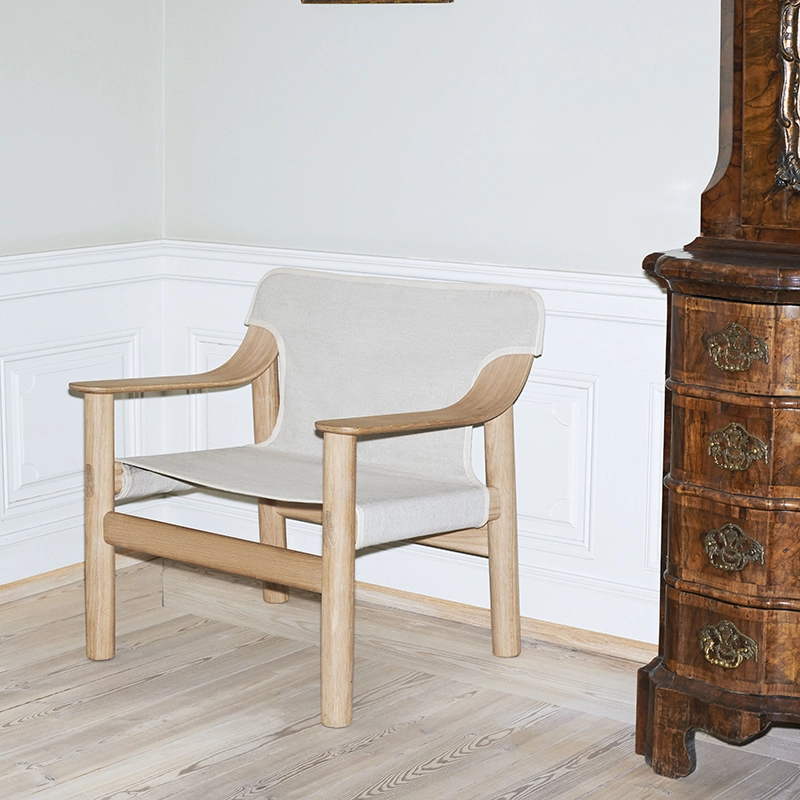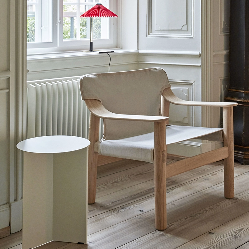 With Bernard, designer Shane Schneck set out to create a new affordable, modern design classic that will appeal to future generations. Published by Hay, Bernard explores the genre of the fauteuil louage in a contemporary context. The combination of a solid wood frame and a visually-light coating creates a unique relationship between the two components. Bernard is a comfortable, durable chair with a distinct expression. The frame is made of solid oak or beech with different finishes, and the slipcover is available in leather or heavy-duty industrial marine canvas. The result is a chair that can satisfy all types of environments.