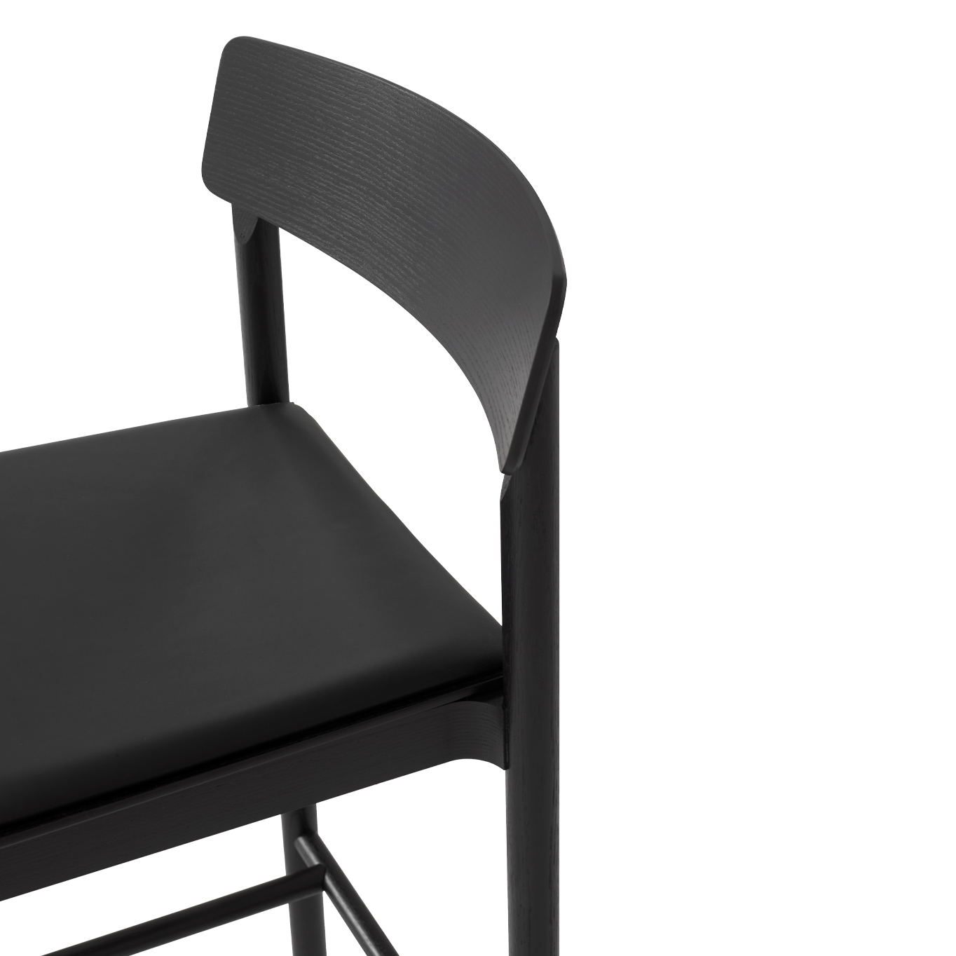 Black water based lacquered ash and formpressed veneer with upholstered HR foam seat and Noble leather upholstery