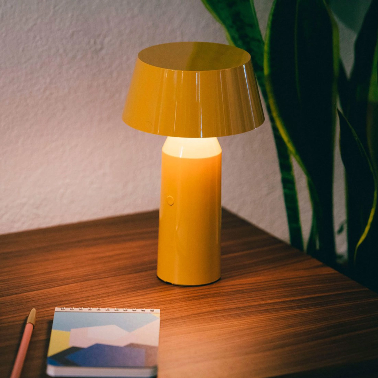 The Bicoca portable lamp portable lamp was designed to brighten everyday moments and bring a gentle, welcoming glow to any setting. Created for Marset, it stands out for its compact silhouette and its joyful use of colour, allowing it to blend effortlessly into a wide variety of personal spaces. Made from polycarbonate, the Bicoca portable lamp is composed of simple geometric shapes that come together to create a lightweight, easy-to-handle object. Its tiltable shade allows you to direct the light precisely, whether placed on a bedside table, a desk, a windowsill or a reading nook. This flexibility gives the lamp great freedom of use, whether at home or on the move. Available in a wide range of colours, the Bicoca portable lamp suits all tastes and interiors. Its compact size and featherweight construction make it easy to carry from one room to another, while its long-lasting battery ensures extended use without limitation. Whether enhancing a cosy atmosphere, lighting up a personal corner or enriching shared moments, the Bicoca naturally finds its place in everyday life.