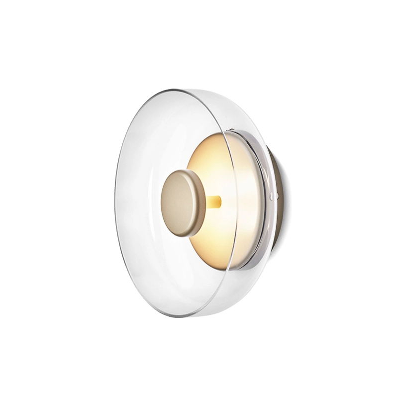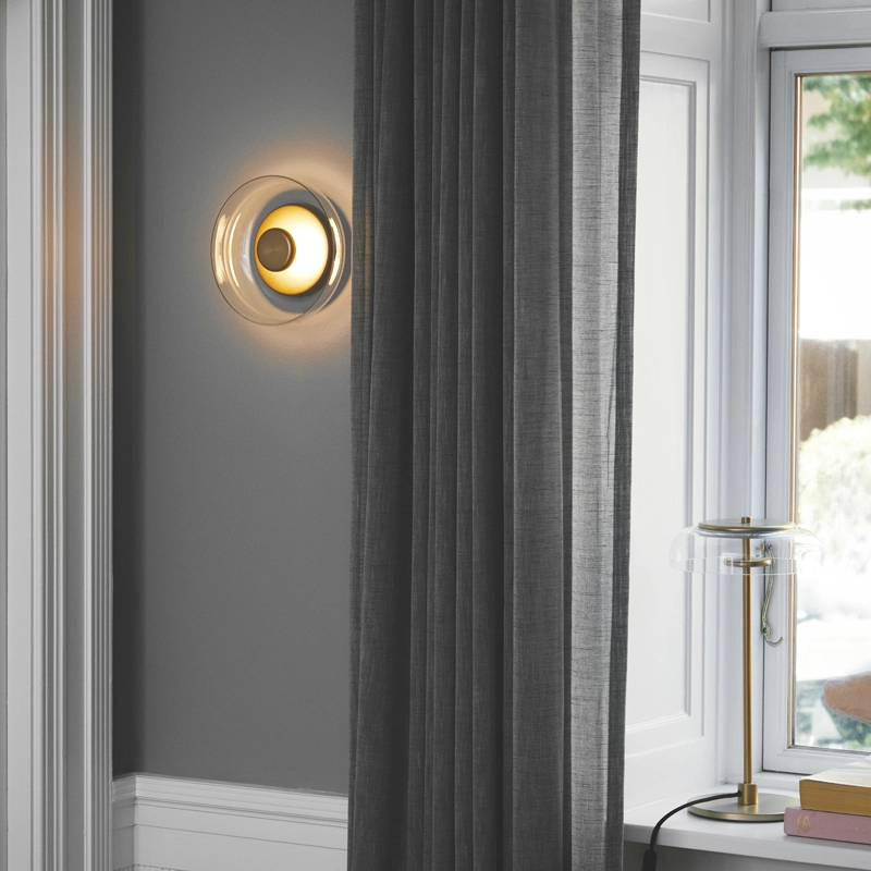 Inspired by the golden light of Nordic autumns, the Blossi collection was designed by Sofie Refer to emit a soft, indirect light. A specially developed LED disc is placed in the lamp so that the light is reflected in the blown glass diffuser and in the gold-finish metal, spreading a sophisticated indirect light. Available as wall, table and floor lamps, the Blossi collection, edited by Nuura, has a wide variety of uses, in both domestic and public spaces.