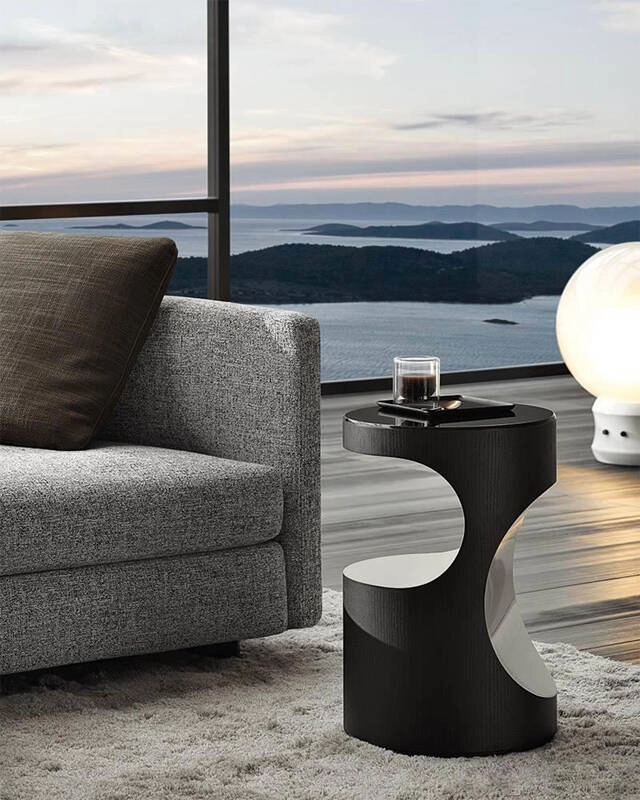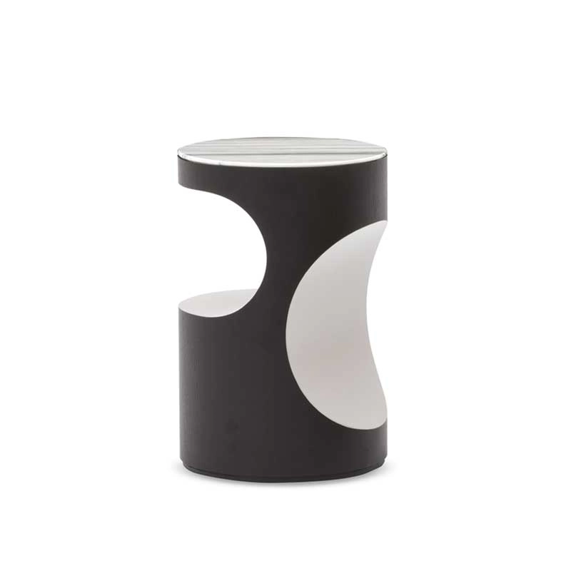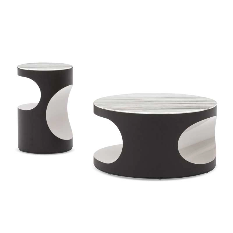 Designed by Gordon Guillaumier, Boden is a collection of small tables with organic silhouettes. The side table and coffee table consist of a compact, hollowed-out volume that plays with solids and voids, concave and convex shapes, and contrasts between the glossy sand-coloured lacquered interior and the opaque mocha-coloured exterior. Boden is highlighted by a black glass paste or Zebrino marble top. Produced by Minotti, the Boden table will add elegance and dynamism to all types of living spaces and various professional settings.