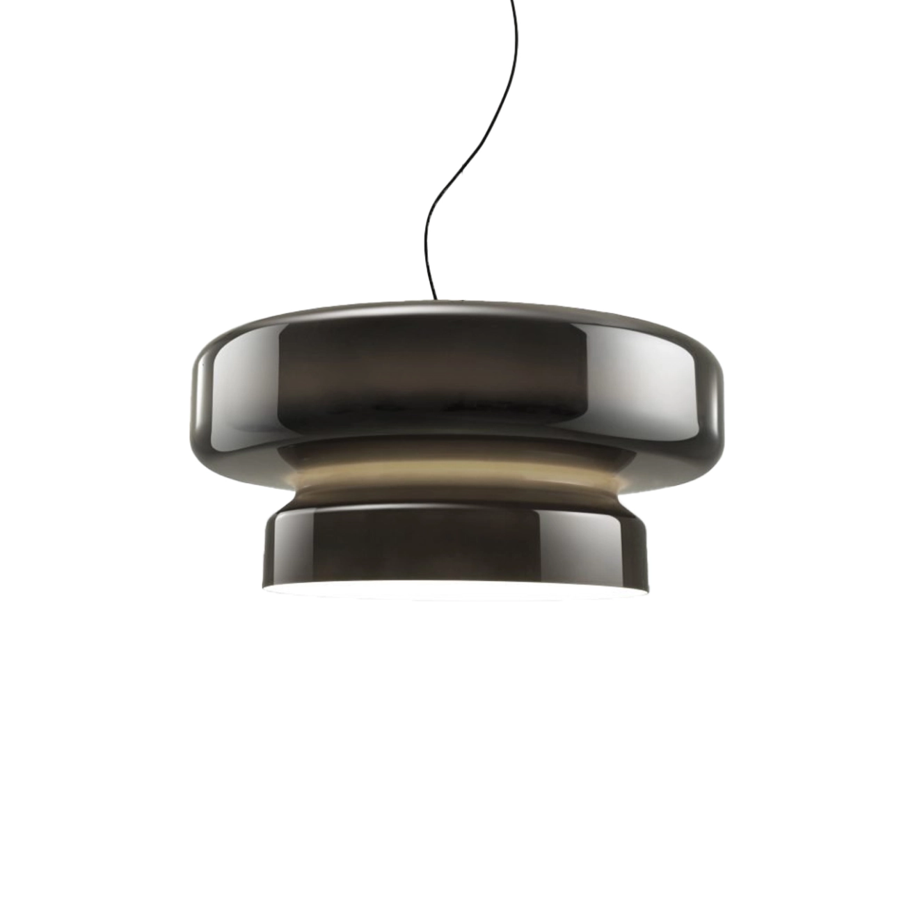 Edited by Marset, Bohemia is a striking and distinctive pendant light distinguished by its remarkable luminosity, which never fails to surprise. At first glance, one might assume it is made of blown glass, yet its scale makes this impossible. Designer Joan Gaspar takes on this material challenge by using polycarbonate instead. The Bohemia pendant features an organic, translucent profile and brings together two volumes within a single form. The result is a large, coloured shade that does not interfere with the white interior, allowing for perfectly controlled illumination. When switched on, the Bohemia pendant casts a crisp white light downwards while also subtly lighting up the shade itself, creating a refined interplay of colour and shadow.