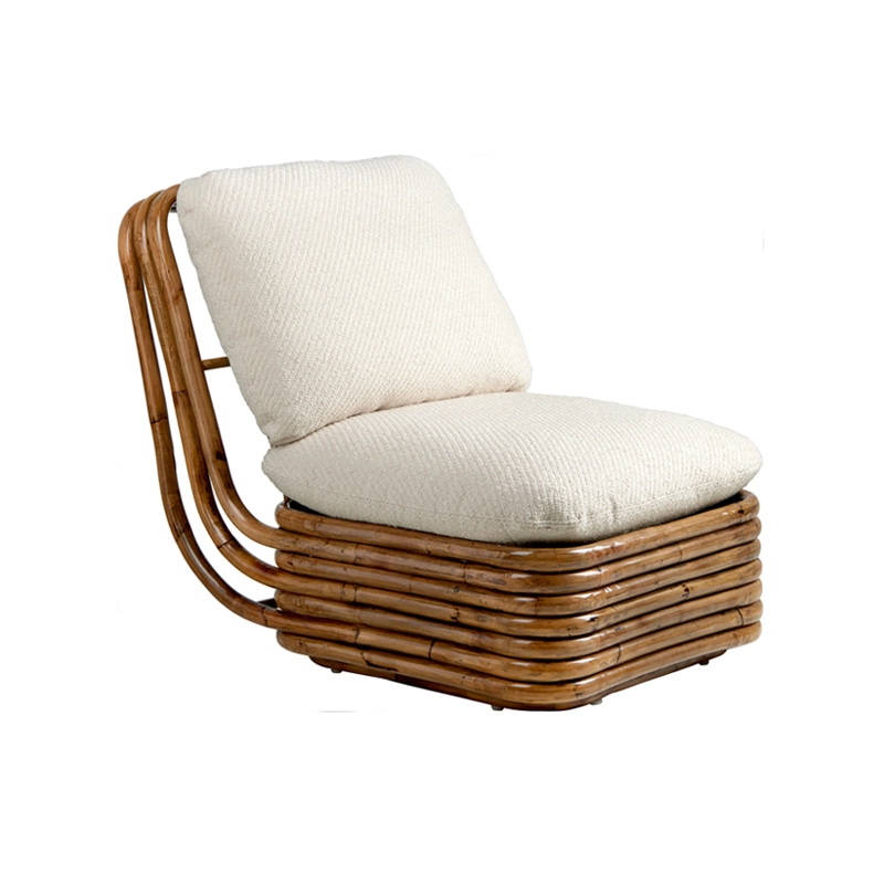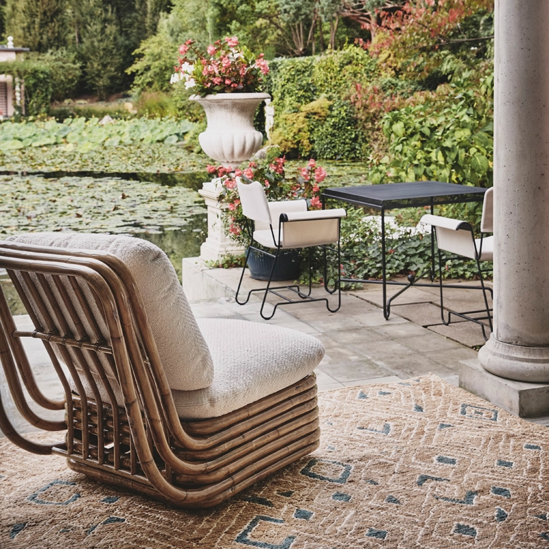 Comprising an armchair, a 3-seater sofa, a pouffe and a lamp, the Bohemian 72 collection embodies Gabriella Crespi's lifelong goal of creating furniture that harmoniously unites indoor and outdoor living. Attracted to rattan for its strength and versatility, she designed these pieces at a time when rattan was very much in vogue. However, her approach to working with it was unusual for the time.