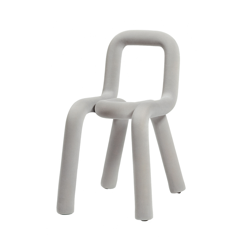 Bold is an unusual chair designed by Big-Game for publisher Moustache. This fun and very clean-lined chair is composed of two tubular metal parts embedded in each other. An updated version of the tubular-steel chair. In fact, the aim of this collection is to transform basic elements to add something 'extra' while preserving the integrity of the original element. The tubular metal frame of the traditional metal chair is thickened with foam padding. Inflated with thick polyurethane foam, the line drawn by the Bold acts as feet, seat and then backrest all at once, providing it with amazing comfort. The Bold chair is made with a single stroke in the manner of Osvaldo Cavandoli's Linea and thickened like a font to which grease has been applied. For example, the Bold chair manages to do away with the need for a seat and backrest, and this was the stated aim of the Big-Game designers: "to transform basic elements to add something 'extra' while preserving the integrity of the original element". Everything superfluous is eliminated, leaving only the essentials. The Bold chair can be found in many collections, including MoMA in New York, the Musée des Arts Décoratifs in Paris and the Museum für Gestaltung in Zurich. Ultra-graphic, the Bold chair doesn't go unnoticed. This surprising and whimsical chair is upholstered in a removable and washable fabric that can change colour in a matter of moments. With its colourful and playful look, the Bold chair adds a spicy and surprising touch to interiors. To be displayed in a child's bedroom or as an office chair, for a comfortable seat with an amazingly striking design.