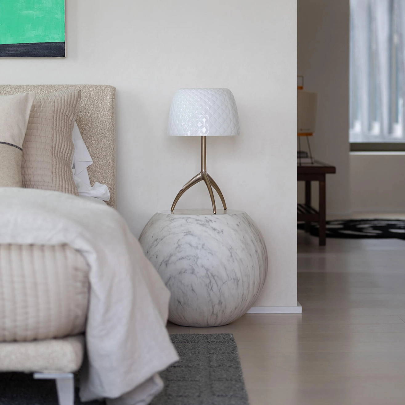 Designed by Giulio Cappellini, the Bong table stands out for its simple yet original shape: a sphere cut off at the top, which can be used as a side table or a footstool. Made from fibreglass and resin, Bong is completely hollow inside, making it lightweight, easy to move and surprisingly versatile. Ideal for adding an original touch to a space, this small Cappellini table is available in several unique finishes, each very different from the others. Elegant, playful and versatile, Bong is perfect for living rooms, offices, shops or professional spaces seeking an iconic and functional design piece that surprises with its unusual shapes and materials.