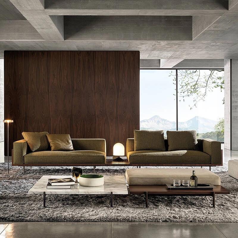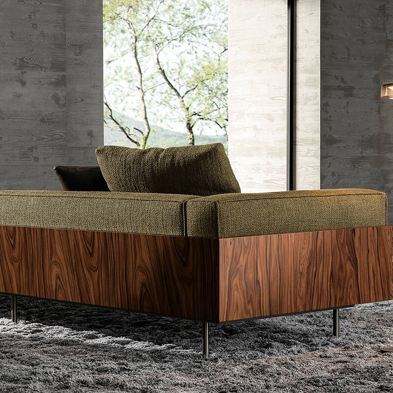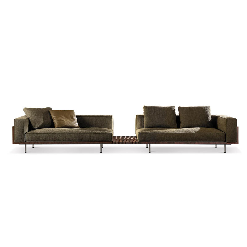 Designed by Marcio Kogan / studio mk27, Brasilia stands out for its very precise, contemporary and minimalist style inspired by Brazilian modernism. Minotti has successfully captured Kogan's stylistic elements and harmoniously blended them with the spirit of the collection. By reinterpreting the forms of the past in a highly innovative way, the Brasilia sofa displays an apparent simplicity that transforms into pure beauty. The juxtaposition of varied and particularly expressive materials that characterises it revisits Minotti's distinctive style in a new way. Forward-looking and designed to stand the test of time, Brasilia sofas are destined to become new classics. The Brasilia sofa stands out for its Mid-Century Modern beauty, revisited and modernised in terms of lines and volumes, materials used - in particular thanks to the Dark Brown stained Santos rosewood - and refined manufacturing details. Designed for residential use, Minotti's Brasilia sofas can also become original features in any space, thanks to the numerous possibilities for combining elements, upholstery and configurations.