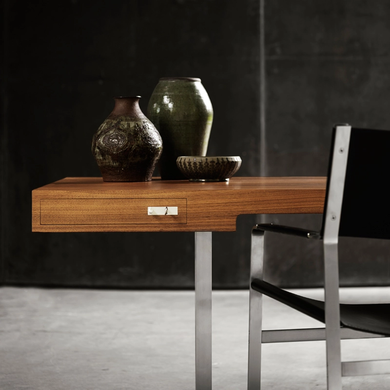 With the CH110 desk, Wegner illustrates another facet of its design talent by bringing together a top, rails and two drawers in a single large wooden unit, resting on two slim stainless flat steel legs. The drawers feature delicate, distinctive stainless steel handles finished with dovetail joints. Each drawer is conveniently divided for perfect organisation. The CH110 desk was created in 1970 as part of Wegner's CH100 series, which was relaunched in 2008 to celebrate Carl Hansen & Søn's 100th anniversary.