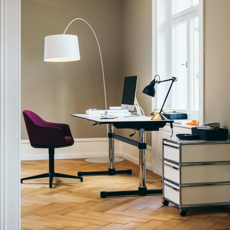 With Kitos M, USM offers a reliable and modern height-adjustable desk. With the USM Kitos M table's mechanical height adjustment option, users can work seated or standing, depending on their needs. In a matter of seconds, the table adapts to the user's individual height (700 to 1200 mm). The USM Kitos M table is a model of stability and solidity - even set at maximum height, the USM Kitos M table is extremely stable. While guaranteeing almost total freedom of movement. With its multiple functions, this table is ideal for shared offices and workstations. With mechanical height adjustment.