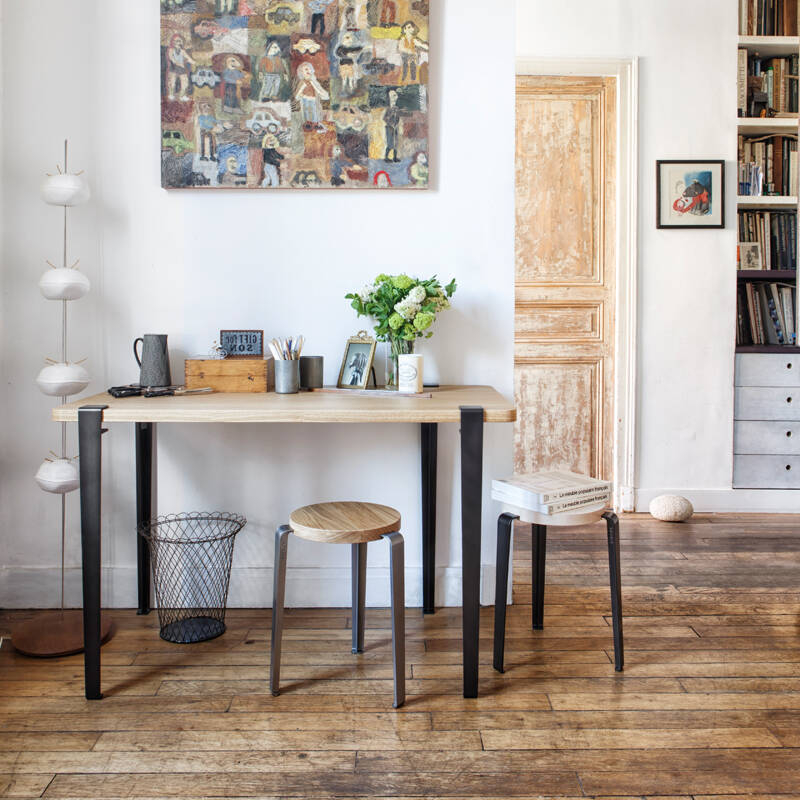 The NOMA desk has 4 TIPTOE legs measuring 75 cm and a 120 x 60 cm oak top. The oak top is made in France and its wood comes from 100% sustainably managed forests. Thanks to the practical, sturdy TIPTOE legs, the Noma desk can be assembled in a matter of minutes. Functional and inspiring, it blends in with all types of interiors and styles: modern, industrial, Scandinavian or even refined.