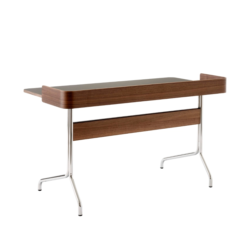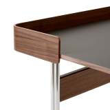 plateau linoléum charbon, noyer laqué, base acier chromé