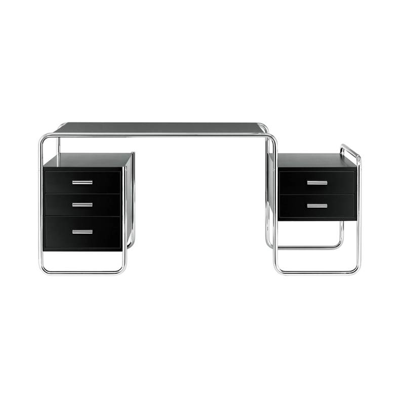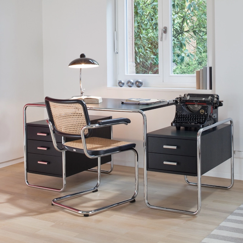 Designed by Marcel Breuer, the S 285 tubular steel desk is an iconic piece of contemporary design. It's as if Marcel Breuer anticipated today's home office and laptops: the compact S 285 desk he designed is an elegant companion for our modern lifestyle and work. The desk S 285 Thonet is a perfect example of the Bauhaus style, which aimed to combine art and technology in a single entity. Breuer was a skilled carpenter and combined his knowledge of tubular steel as a material with his interior design experience. The stained wood top and storage units are harmoniously integrated into the tubular steel frame. The structure is formed by curved lines, and the clean-cut wooden elements seem to float inside. With its balanced proportions, the S 285 desk is available from Thonet in various models, all equally iconic and timeless.