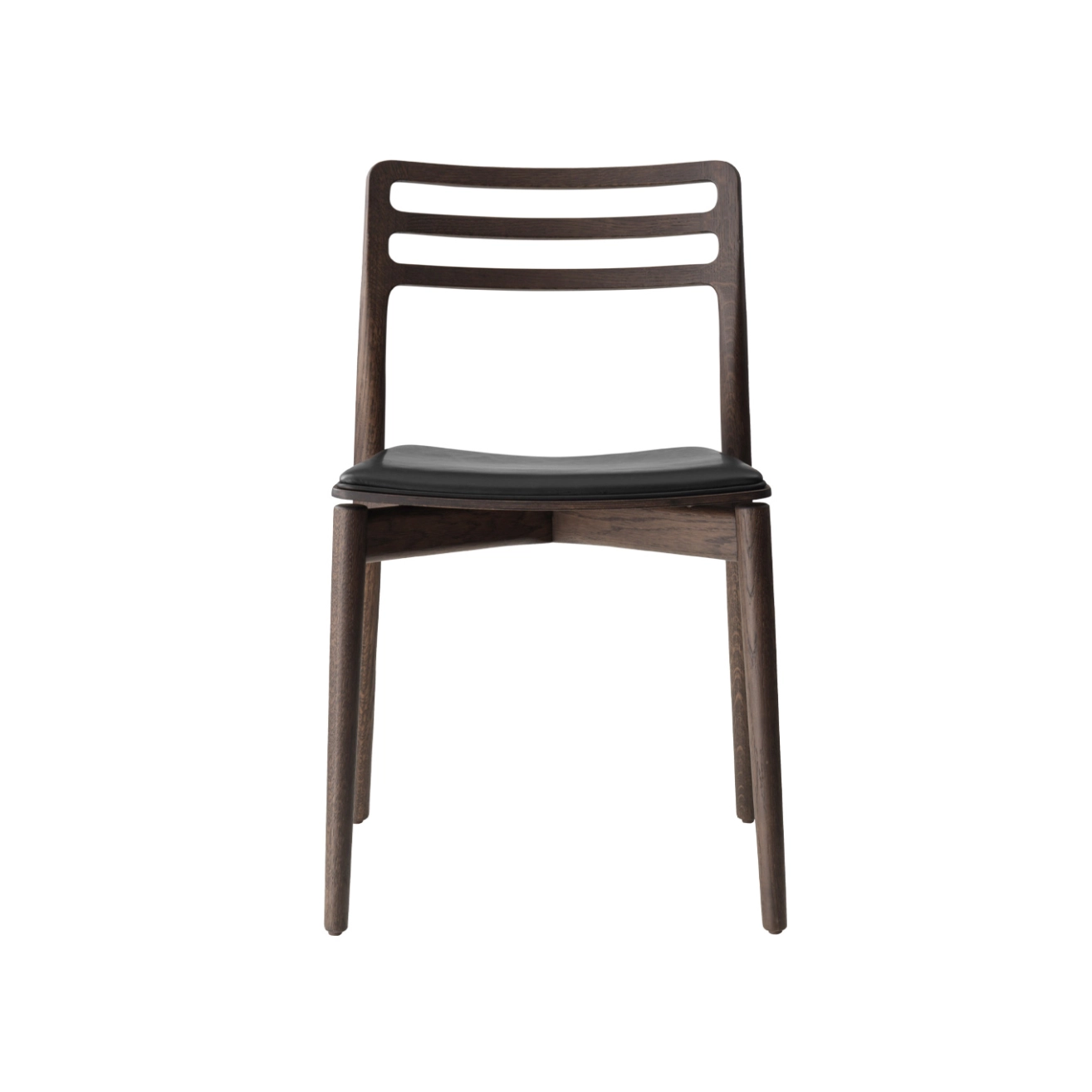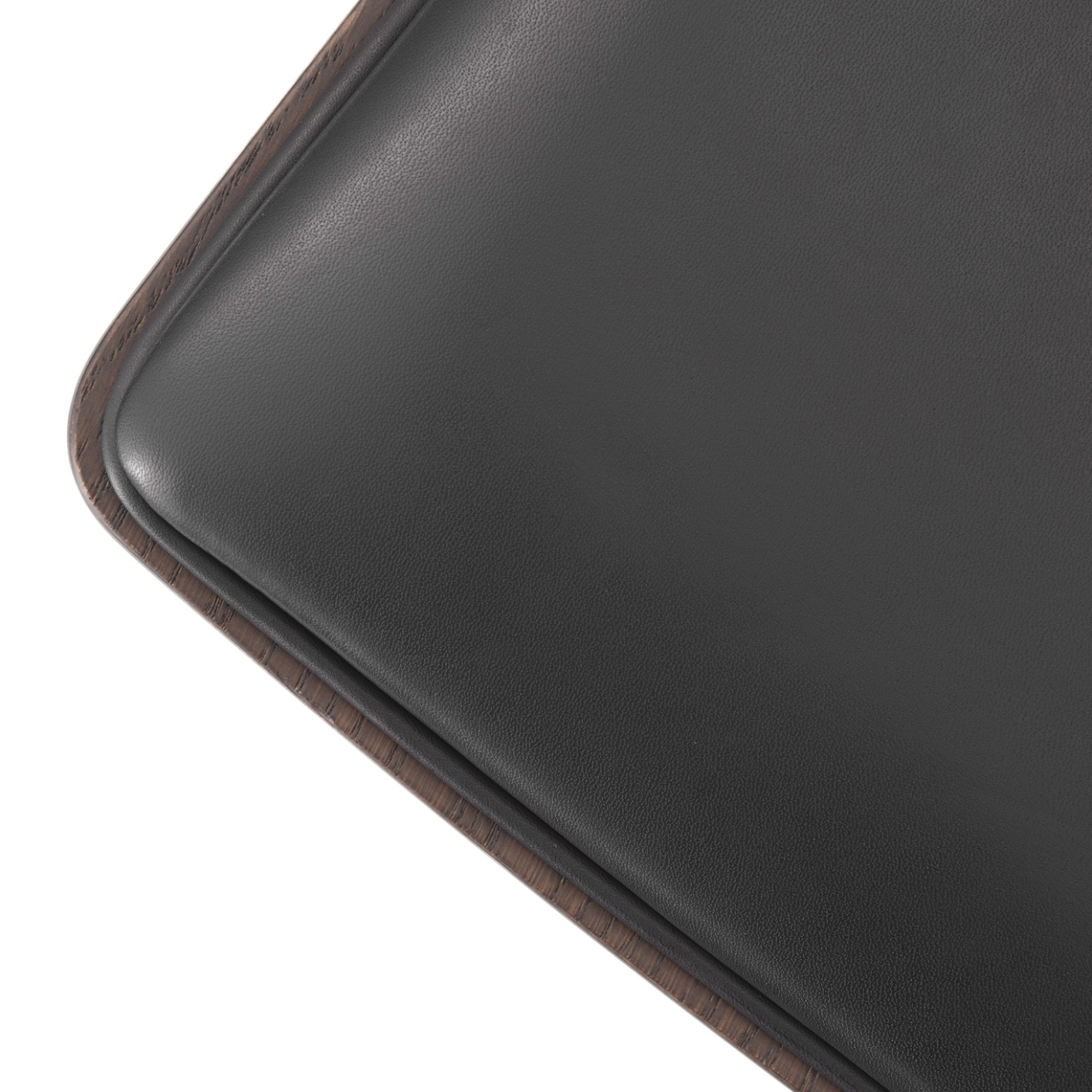 Structure in lacquered and stained dark oak, integrated seat cushion in aniline leather
