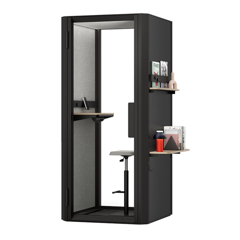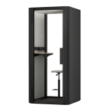 The Jetson S1 acoustic booth is equipped with a wall-mounted shelf and a height-adjustable stool. Optional accessories are available: - A set of elegant shelves, including a deep shelf, a narrow shelf, a display rail, a wall hook and a display stand. - A whiteboard, supplied with a marker pen, a sponge, 3 magnets and a wall hook