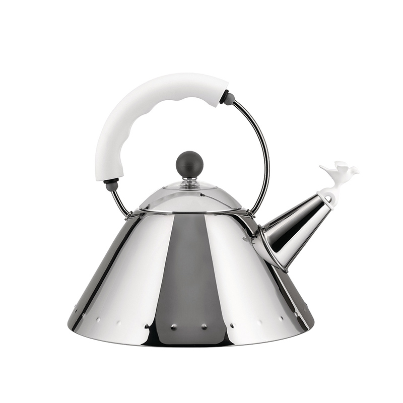 This famous 9093 kettle, with the bird that whistles when the water boils, has been a great success since its creation in 1985. For the Alessi brand, it represents the meeting point between great design and the large-scale production methods sought by its American designer Michael Graves. His work incorporates the artist's characteristic visual codes, combining influences from Art Deco and Pop Art, right through to the language of cartoons. The kettle has appeared in a number of films (Crocodile Dundee, Ghost, Per una notte d'amore...). This designer kitchen accessory, which is also suitable for induction hobs, is made from 18/10 stainless steel with a polyamide handle and bird whistle, giving it an authentic look and making it a great decorative item to give as a gift or for yourself.