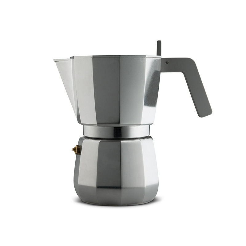 The Moka espresso coffee maker, published by Alessi and created by designer David Chipperfield, is a product with a familiar yet innovative shape. A timeless object, it perfectly represents Italian culture. The Moka espresso coffee maker has details that make it unique and functional, like its tray lid that allows you to put your cup down so it can heat up, a trick to sublimate the aroma and flavour of the drink. The Alessi Moka coffee maker is a must-have for coffee lovers.