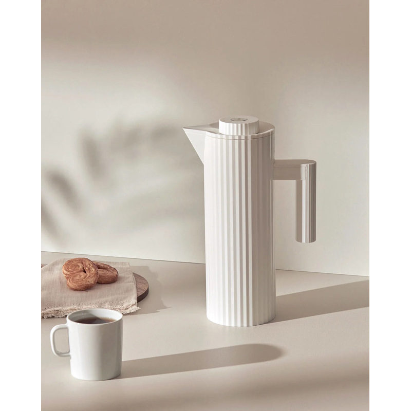 Published by Alessi and designed by Michele De Lucchi, Plissé is an isothermal jug, dressed in a refined drape. This jug keeps your hot drinks warm and is easy to transport and use. This accessory is a perfect synthesis of technical constraints, high performance and couture elegance. Elegant and timeless, the Plissé isothermal jug is the perfect addition to any home.