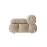 In its reissue, Camaleonda retains the elements that made it a contemporary classic. By mutual agreement, Mario Bellini and the founder of B&B Italia, Pierre Ambrogio Busnelli, chose to keep the 90x90 cm seat module, along with the backrest and armrests, faithful to the original design. The original templates for cutting the upholstery were also recovered. The generous polyurethane padding, which forms the characteristic tufting, remains unchanged. It is achieved through Bellini’s innovative system of cables, hooks, and rings designed in 1970, ensuring the sofa’s appearance and modularity. Thanks to these cables and rings, the modules can be detached and recomposed at will, allowing the sofa to adapt to the evolving tastes and dynamic needs of its users. Architect and designer Mario Bellini has a particular view on his creation: “Among all the objects I’ve designed, Camaleonda is undoubtedly the one that best represents the concept of freedom. The configurations that can be achieved are infinite.” The Camaleonda sofa was produced from 1970 to 1979. In its nine years of existence, this modular sofa became an undeniable reference in Italian design. It is no surprise that fifty years later, B&B Italia has brought Camaleonda back into the spotlight by re-launching its production. The reissue project was initiated in 2019. It took nearly a year to adapt the sofa to current challenges. The materials used in this sofa are recycled and recyclable. The structure of Camaleonda is made of wood panels, and the spherical feet are crafted from Forest Stewardship Council certified beech wood. Its removable cover, made from dacron (a synthetic fabric entirely made from recycled PET), protects the padding. The seat of Camaleonda required significant work from the research and development teams at B&B Italia to ensure the various layers interact with each other and create empty spaces to produce a soft spring-like effect. The Camaleonda is a dynamic, lively, and sincere object, also modifiable at will while always maintaining its particular and unique identity. A founding feature of Camaleonda is its practically infinite modularity, a geometric nature that allows each element to become a sort of giant pixel through which one can define their own domestic environment. By attaching and detaching the seats, backrests, and armrests, you have the luxury of changing your mind as many times as you want, shifting and redesigning the space. Camaleonda presents a magical balance between the rigorous geometry of the square and the welcoming roundness of the padding, further highlighting the elasticity and tactile ergonomics that characterize many of Mario Bellini's design projects. Camaleonda can be upholstered in the full range of fabrics and leathers from B&B Italia, allowing for even more possible combinations.