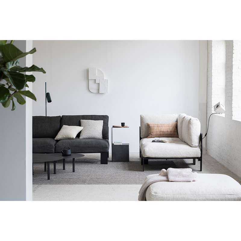 Conceived by designer Bea Mombaers for Serax, the Bench sofa collectionprovides a variety of independent seating modules to create an inviting, modular relaxation space: 1-, 2- and 3-seater sofa modules as well as a footrest ottoman. Integrated into this extensive collection ofsofas, the module Bench 1-seater offers a stylish, modular solution for contemporary interiors. This module Bench 1-seater is available in eight colours in sleek, neutral tones to match all interior design styles and add a touch of sophistication. Each piece is made from black aluminium for optimum manoeuvrability and features soft cushions suitable for both indoor and outdoor use. By combining and configuring these modular elements, it is possible to create a personalised and flexible seating layout, perfectly suited to any space and any need.