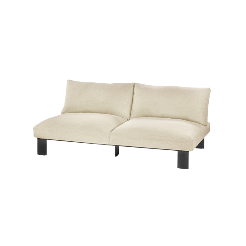 Conceived by designer Bea Mombaers for Serax, the Bench sofa collectionprovides a variety of independent seating modules to create an inviting, modular relaxation space: 1-, 2- and 3-seater sofa modules as well as a footrest ottoman. Integrated into this extensive collection of sofas, the module Bench 2-seater offers a stylish, modular solution for contemporary interiors. This module Bench 2-seater is available in eight colours in sleek, neutral tones to match all interior design styles and add a touch of sophistication. Each piece is made from black aluminium for optimum manoeuvrability and features soft cushions suitable for both indoor and outdoor use. By combining and configuring these modular elements, it is possible to create a personalised and flexible seating layout, perfectly suited to any space and any need.