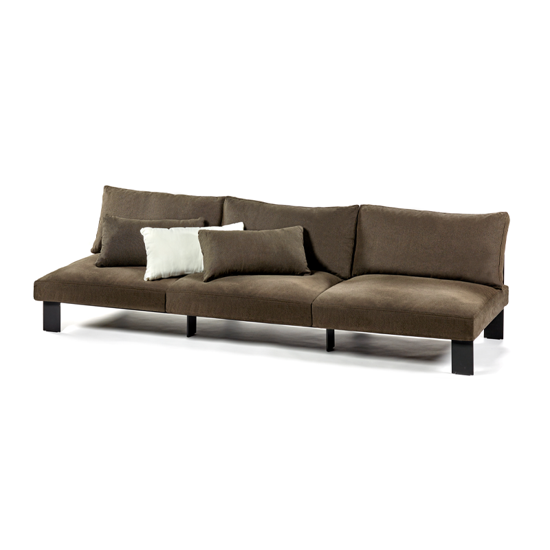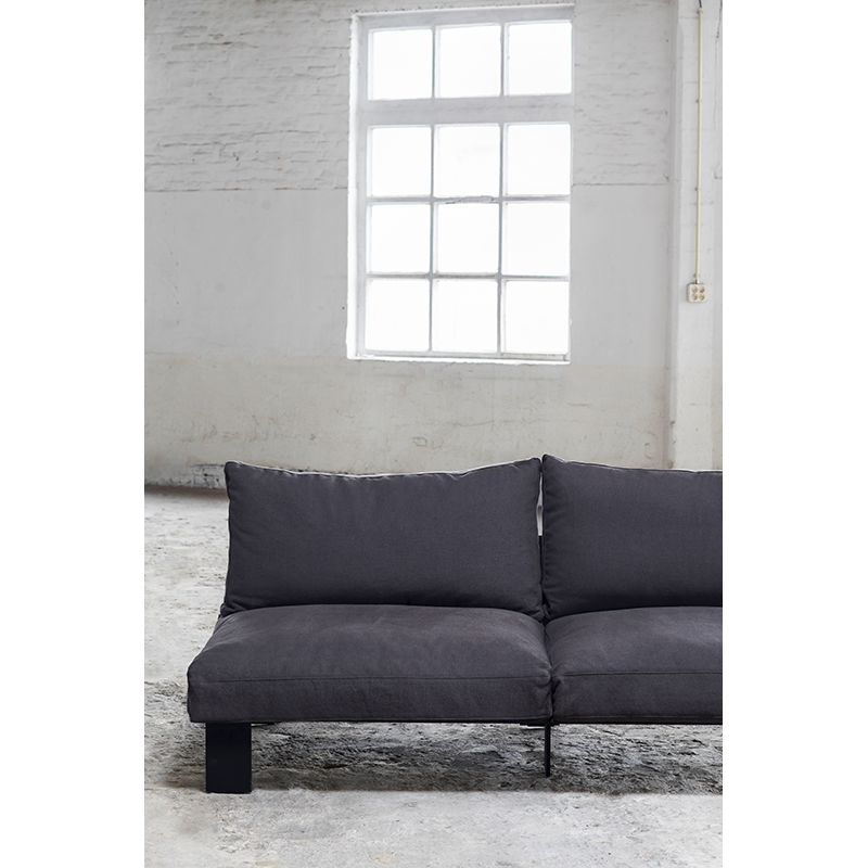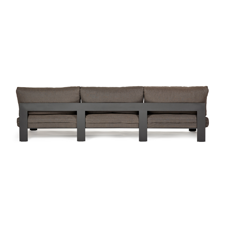 Conceived by designer Bea Mombaers for Serax, the Bench sofa collectionprovides a variety of independent seating modules to create an inviting, modular relaxation space: 1-, 2- and 3-seater sofa modules as well as a footrest ottoman. Integrated into this extensive collection ofsofas, the module Bench 3-seater offers a stylish, modular solution for contemporary interiors. This module Bench 3-seater is available in eight colours in sleek, neutral tones to match all interior design styles and add a touch of sophistication. Each piece is made from black aluminium for optimum manoeuvrability and features soft cushions suitable for both indoor and outdoor use. By combining and configuring these modular elements, it is possible to create a personalised and flexible seating layout, perfectly suited to any space and any need.