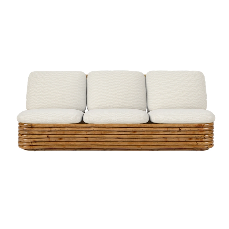 Comprising an armchair, a 3-seater sofa, a footstool and a lamp, the Bohemian 72 collection embodies Gabriella Crespi's career-long goal of creating furniture that harmoniously unites indoor and outdoor living. Drawn to rattan for its strength and versatility, she designed these pieces at a time when rattan was very much in vogue. Nevertheless, the way he worked it was unusual for the time.