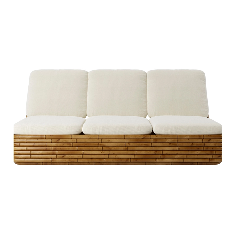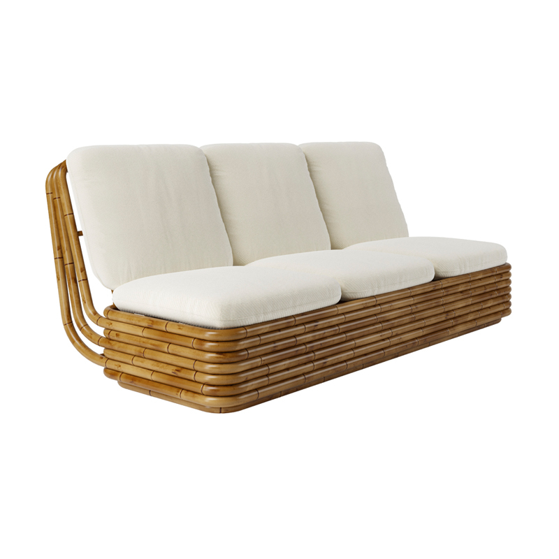 Comprising an armchair, a 3-seater sofa, a footstool and a lamp, the Bohemian 72 collection embodies Gabriella Crespi's career-long goal of creating furniture that harmoniously unites indoor and outdoor living. Drawn to rattan for its strength and versatility, she designed these pieces at a time when rattan was very much in vogue. Nevertheless, the way he worked it was unusual for the time.