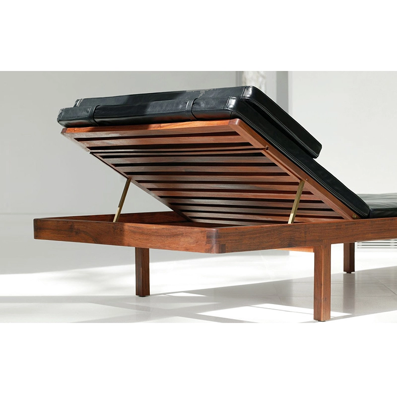 DAYBED Elegant black leather/ oiled walnut