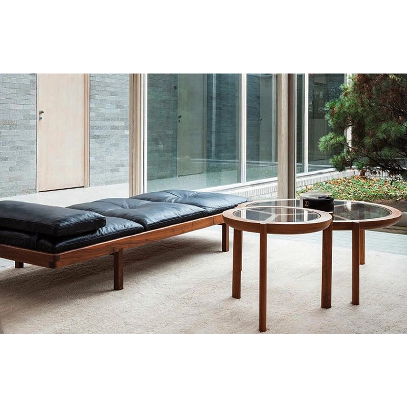 3. DAYBED Elegant black leather/ oiled walnut