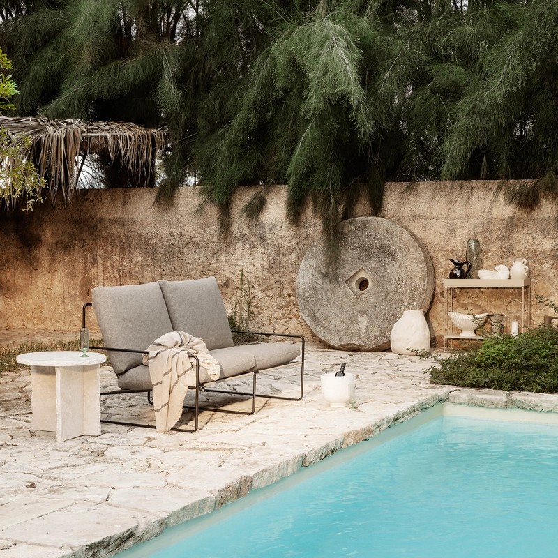 With Desert Dolce, Ferm Living offers a collection of upholstered seating, perfect for creating a space for conviviality and relaxation in the garden. The Desert Dolce sofas and armchairs have been designed for the outdoors with materials and fabrics that resist the elements and the sun. Comfortable, functional and aesthetically pleasing, the Desert Dolce collection adapts to all outdoor spaces to make the most of fine weather. It is also ideal for indoor use.