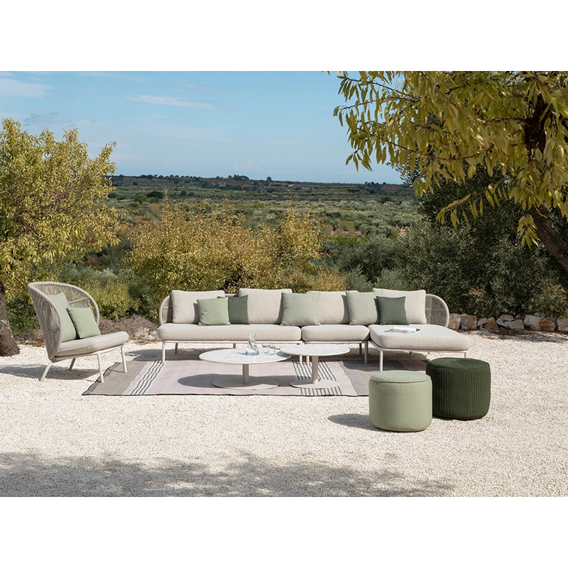 Discover a new dimension of comfort and versatility with theKodo Modular sofa system from Studio Segers, an innovative piece in the Vincent Sheppard collection. Designed for maximum flexibility and contemporary style, this modular sofa pushes the boundaries of outdoor living. Its unique design combines clean lines with intelligent modularity, allowing you to create a multitude of customised configurations to suit any outdoor space. Built on a sturdy powder-coated aluminium base, this sofa is wrapped in high-quality polypropylene rope, ensuring exceptional resistance to the elements while retaining its elegance. Accompanied by comfortable, hard-wearing cushions, the Kodo Modular sofa by Vincent Sheppard offers exceptional flexibility to create the garden furniture that suits you.