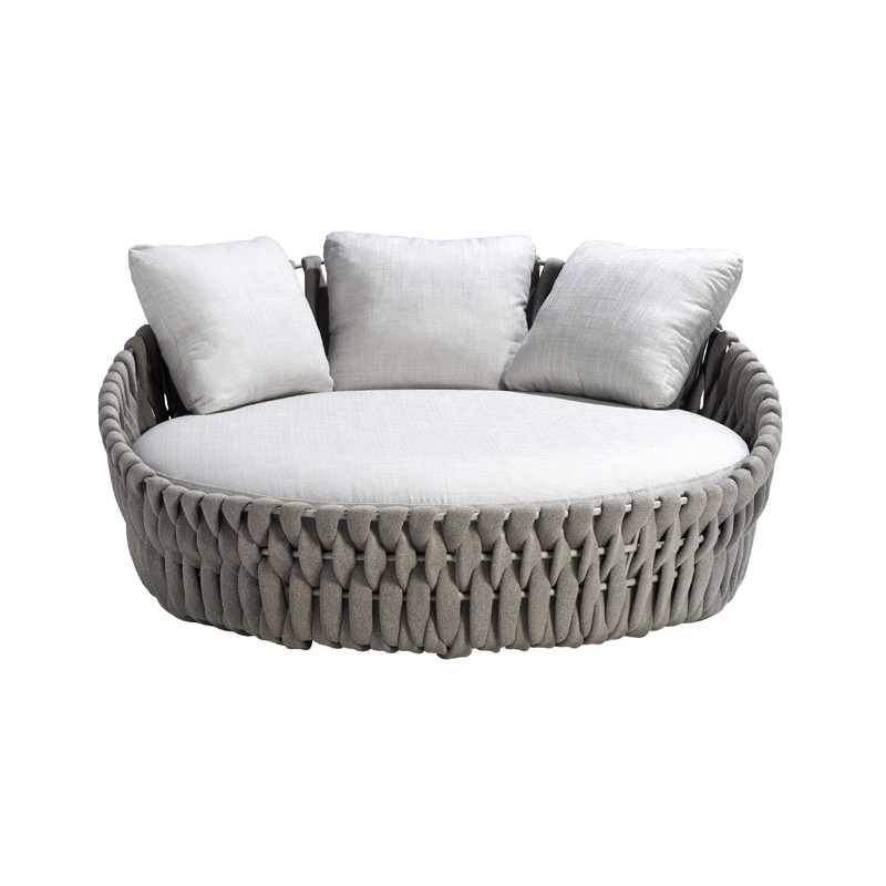 The Tosca outdoor furniture collection from Tribu is both welcoming and warm, chic and intriguing. This is the first time that Tribu has called on Monica Armani, who designed this luxurious collection charged with emotion and femininity, combining extra-wide vertical braided seats supported by slightly converging tapered legs. The materials used to create the Daybed Tosca backrest weave are undoubtedly innovative: foam covered with a knitted sheath that is not only weather-resistant, but also extremely soft to the touch with a totally natural look. The Daybed Tosca, with its ultra-generous shapes, is the ideal setting for lounging and dreaming in the sun. The seat is very soft, thanks to the comfortable cushions with padding specifically designed for outdoor use.