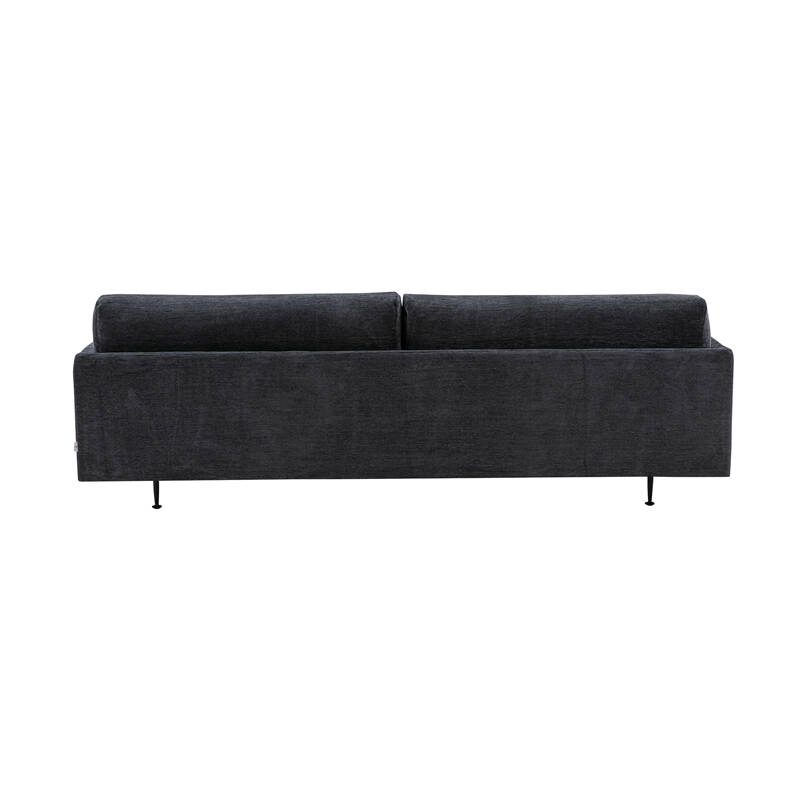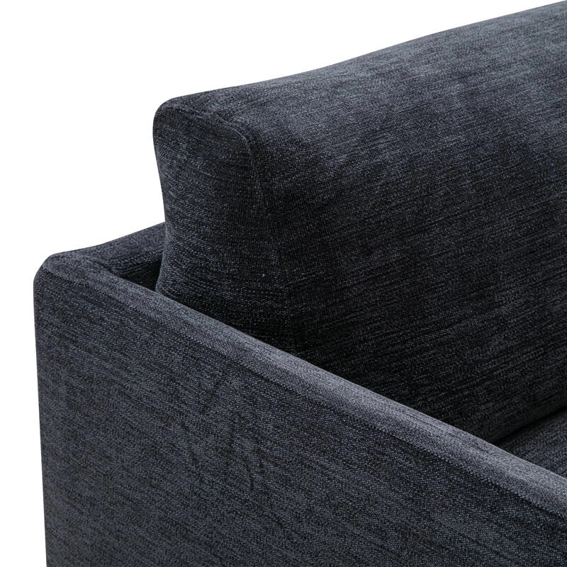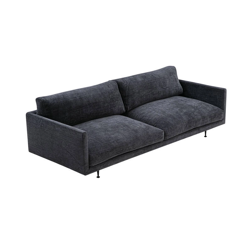 revêtement déhoussable tissu, pieds acier finition époxy noir, rembourrage mousse polyuréthane, duvet, plumes et balles de fibres, coussins de dossier plumes et duvet