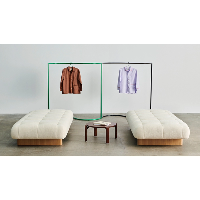 Described by its creators as an "upholstered landscape sofa system", the Quilton Lift Daybed, designed by Doshi Levien and published by Hay, serves as a central platform for living, working, socialising and relaxing. This generously sized series combines sculptural shapes with solid wood legs that elegantly elevate the daybed, creating a light, contemporary expression. The meticulous upholstery highlights the softness and volume of the foam and wadding seats, offering exceptional comfort. Available in a range of upholstery options and with legs in different types of wood, the welcoming aesthetic and versatility of the Quilton Lift Daybed make it ideal for a variety of spaces, whether domestic or public.